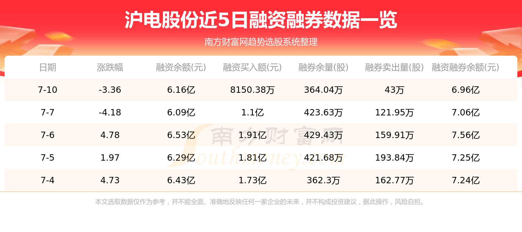 7月10日沪电股份融券信息显示,融资方面,当日融资买入8150.38万元,融资偿还7506.68万元,融资净买额643.7万元。融券方面,融券卖出43万股,融券偿还102.59万股,融券余量364.04万股,融券余额8056.12万元。融资融券余额6.96亿元。近5日融资融券数据一览见下表: