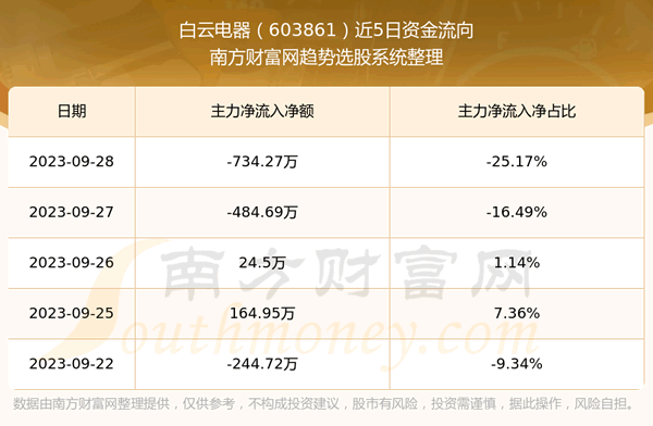 二、白云电器(603861)近期盘面、资金面情况