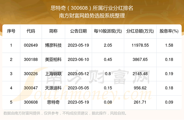 二、思特奇300608行业分红排名