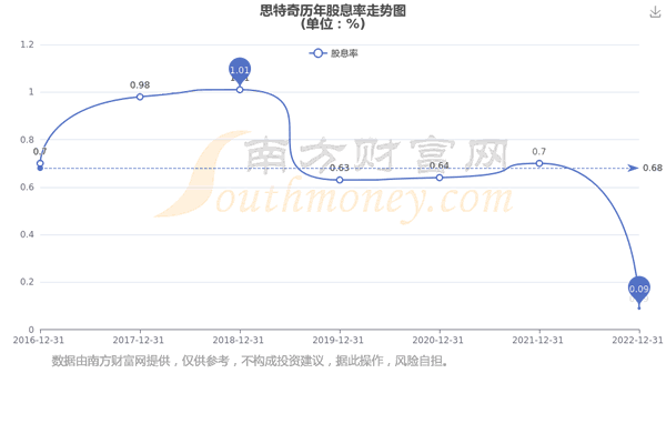 近年思特奇年度股息率走势如下图: