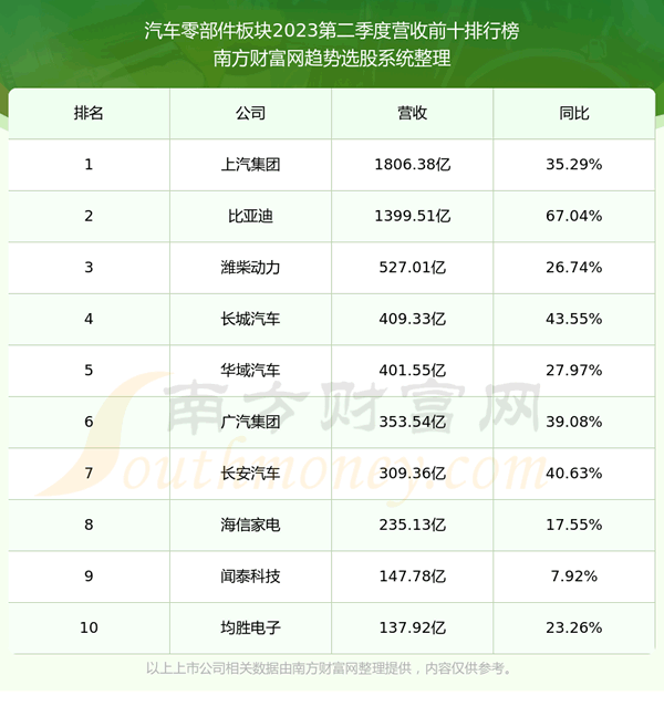 按照趋势选股系统统计,该股所属板块为汽车零部件板块,该板块共有429只股票,继峰股份2023第二季度营收在该板块中排名为第26名,该板块2023第二季度营收排名前十的股票如下表: