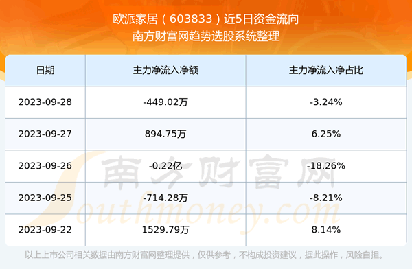 二、欧派家居(603833)近期盘面、资金面情况