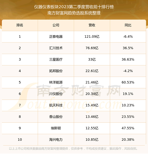 按照趋势选股系统统计,该股所属板块为仪器仪表板块,该板块共有95只股票,信捷电气2023第二季度营收在该板块中排名为第27名,该板块2023第二季度营收排名前十的股票如下表: