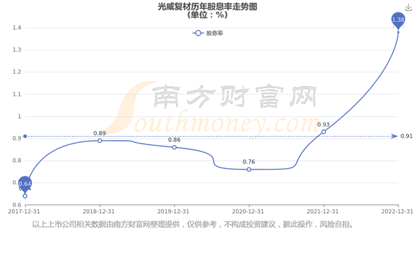光威复材最新一次公布的分红方案为10转6派7元。本次权益分派股权登记日为2023年5月10日,除权除息日为2023年5月11日,派息日为2023年5月11日。