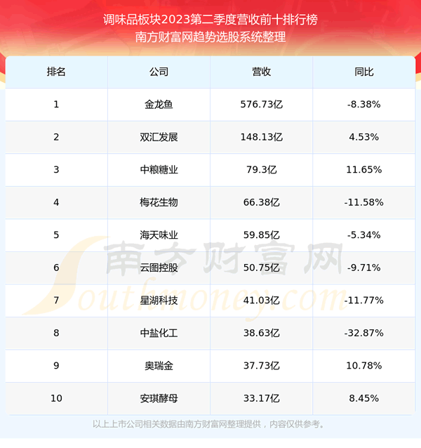 按照趋势选股系统统计,该股所属板块为调味品板块,该板块共有48只股票,恒顺醋业2023第二季度营收在该板块中排名为第32名,该板块2023第二季度营收排名前十的股票如下表: