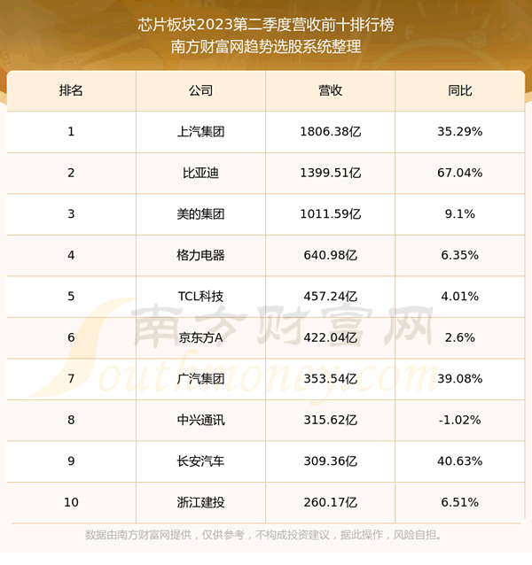 按照趋势选股系统统计,该股所属板块为芯片板块,该板块共有472只股票,中科蓝讯2023第二季度营收在该板块中排名为第472名,该板块2023第二季度营收排名前十的股票如下表: