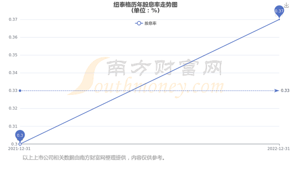 近年纽泰格分红情况如下表所示: