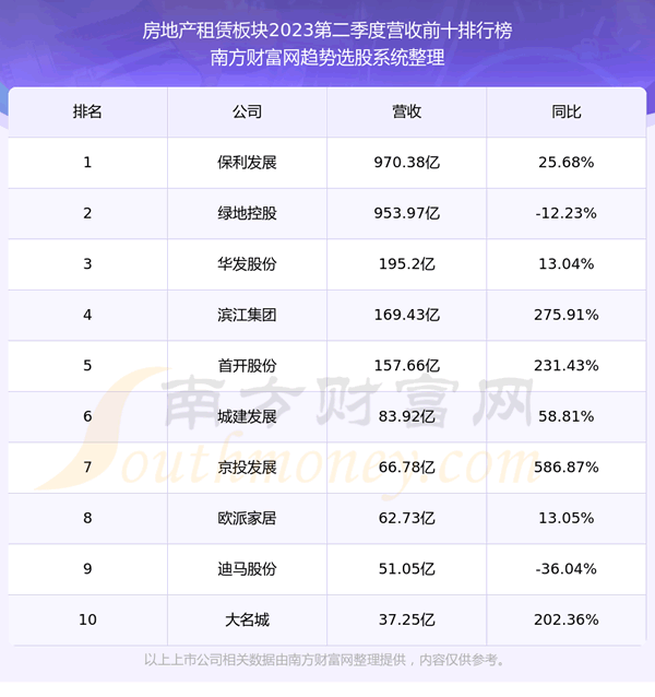 按照趋势选股系统统计,该股所属板块为房地产租赁板块,该板块共有53只股票,浦东金桥2023第二季度营收在该板块中排名为第31名,该板块2023第二季度营收排名前十的股票如下表: