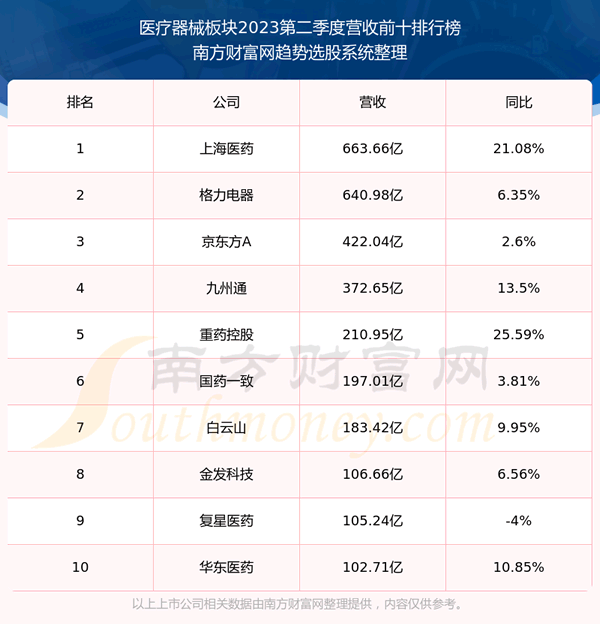 按照趋势选股系统统计,该股所属板块为医疗器械板块,该板块共有394只股票,汉商集团2023第二季度营收在该板块中排名为第209名,该板块2023第二季度营收排名前十的股票如下表: