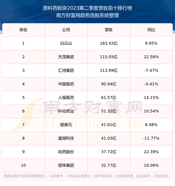 按照趋势选股系统统计,该股所属板块为原料药板块,该板块共有115只股票,奥翔药业2023第二季度营收在该板块中排名为第83名,该板块2023第二季度营收排名前十的股票如下表: