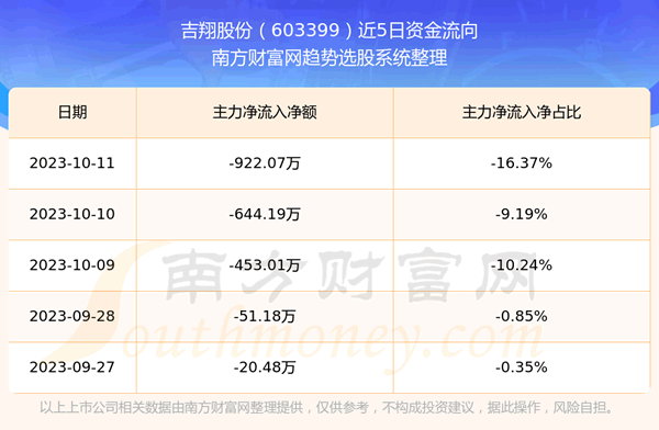 二、吉翔股份(603399)近期盘面、资金面情况