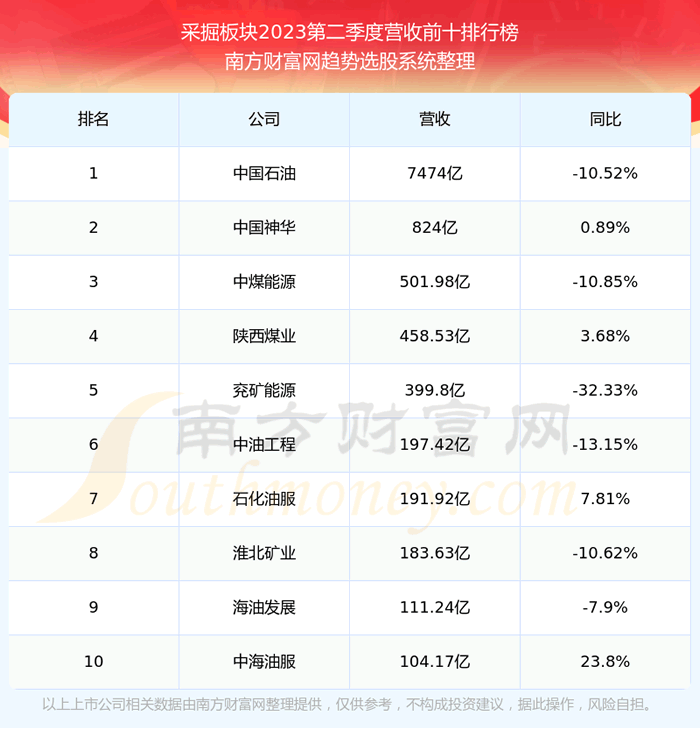 按照趋势选股系统统计,该股所属板块为采掘板块,该板块共有77只股票,龙高股份2023第二季度营收在该板块中排名为第77名,该板块2023第二季度营收排名前十的股票如下表: