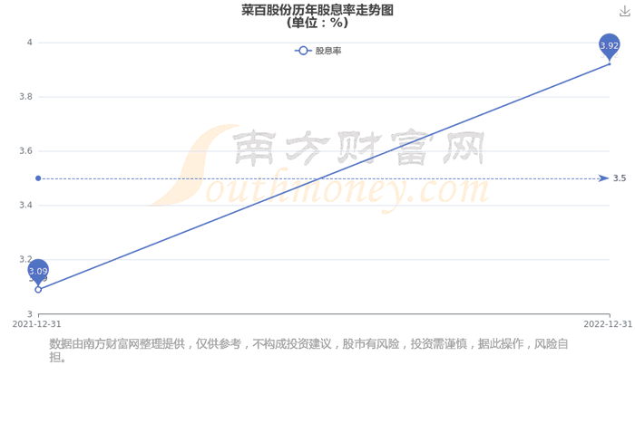 菜百股份最新一次公布的分红方案为10派4.6元。本次权益分派股权登记日为2023年6月8日,除权除息日为2023年6月9日,派息日为2023年6月9日。
