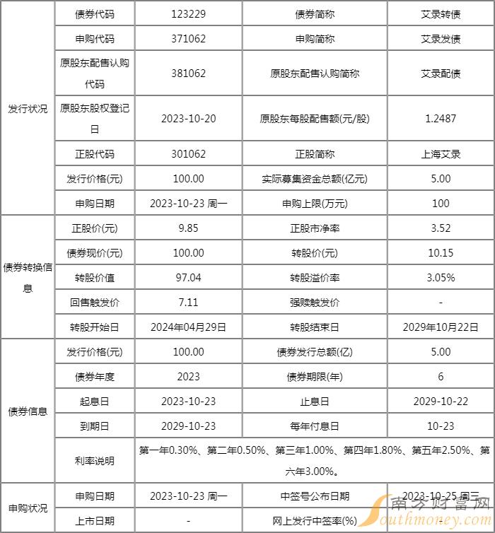 根据监管层安排,艾录转债将于10月23日深交所上市申购,以下是小语为大家提供的新债艾录转债申购宝典: