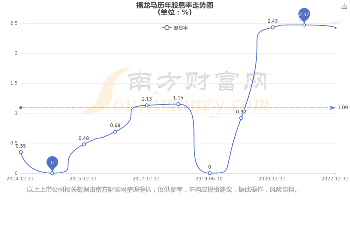 福龙马最新一次公布的分红方案为10派2.5元。本次权益分派股权登记日为2023年6月5日,除权除息日为2023年6月6日,派息日为2023年6月6日。