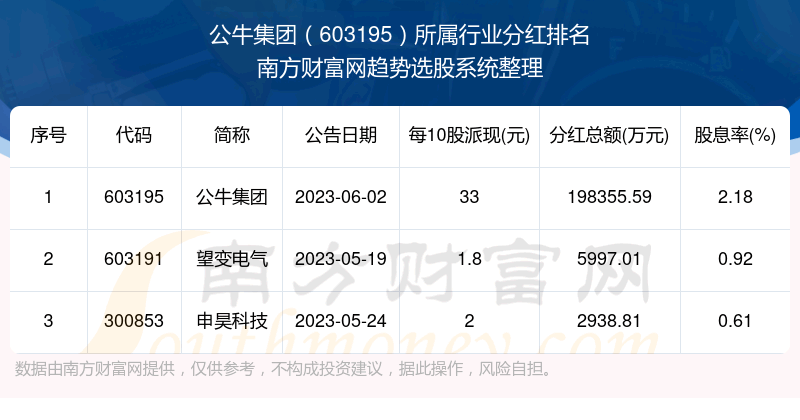 按照趋势选股系统统计,公牛集团所属行业为控制设备行业,控制设备行业分红排名情况如下表:
