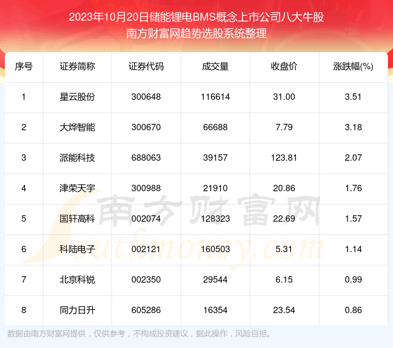 数据解盘|储能锂电BMS概念上市公司八大牛股一览 |