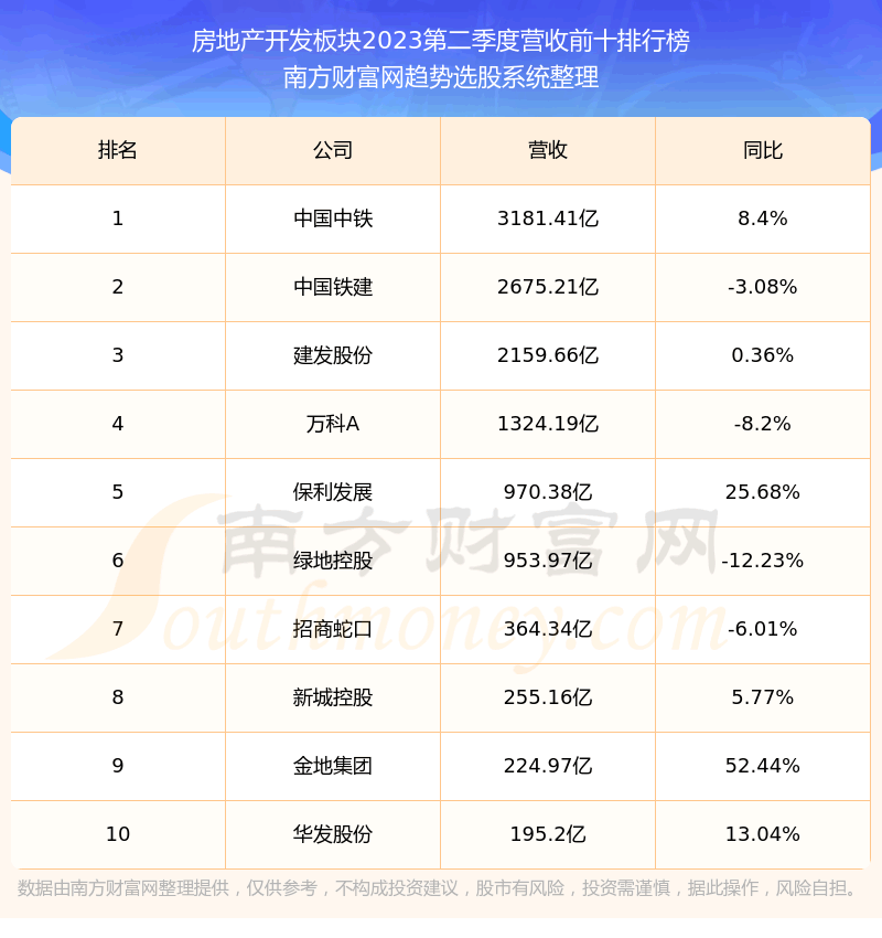 按照趋势选股系统统计,该股所属板块为房地产开发板块,该板块共有141只股票,亚通股份2023第二季度营收在该板块中排名为第102名,该板块2023第二季度营收排名前十的股票如下表: