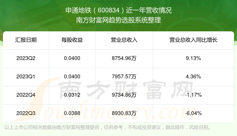 申通地铁股票近一年营收情况如下表: