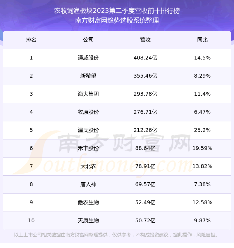 按照趋势选股系统统计,该股所属板块为农牧饲渔板块,该板块共有79只股票,禾丰股份2023第二季度营收在该板块中排名为第6名,该板块2023第二季度营收排名前十的股票如下表:
