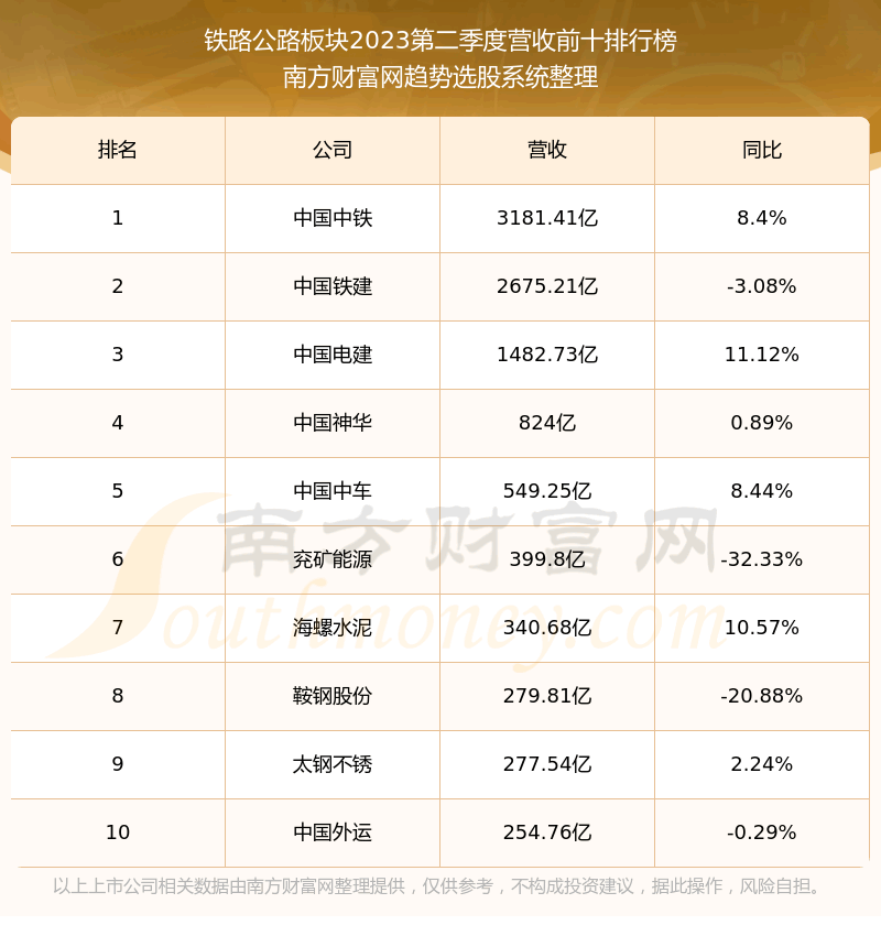 按照趋势选股系统统计,该股所属板块为铁路公路板块,该板块共有121只股票,中原高速2023第二季度营收在该板块中排名为第121名,该板块2023第二季度营收排名前十的股票如下表: