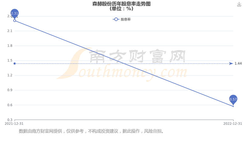 近年森赫股份年度股息率走势如下图: