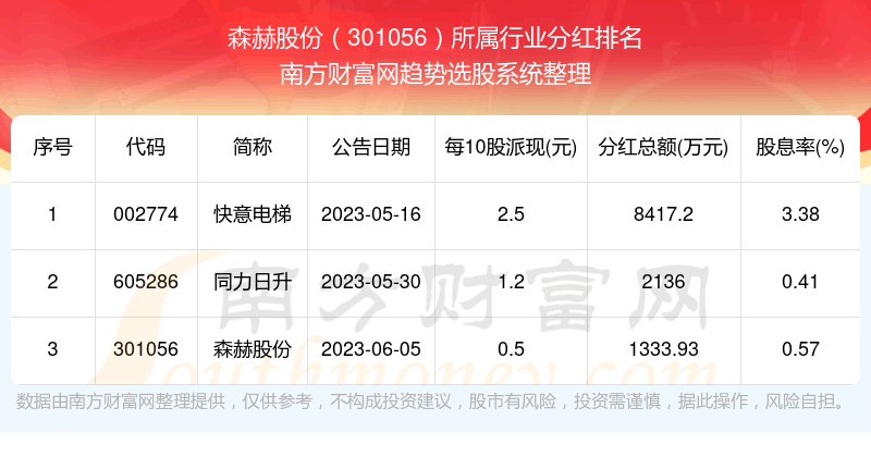 二、森赫股份301056行业分红排名