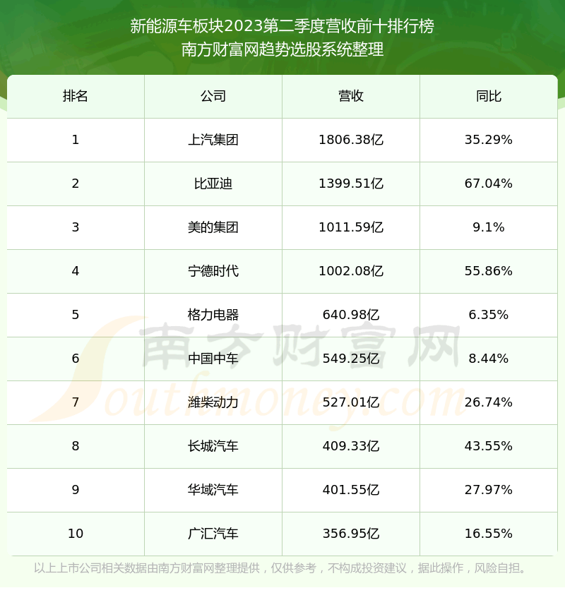 按照趋势选股系统统计,该股所属板块为新能源车板块,该板块共有544只股票,凯众股份2023第二季度营收在该板块中排名为第473名,该板块2023第二季度营收排名前十的股票如下表: