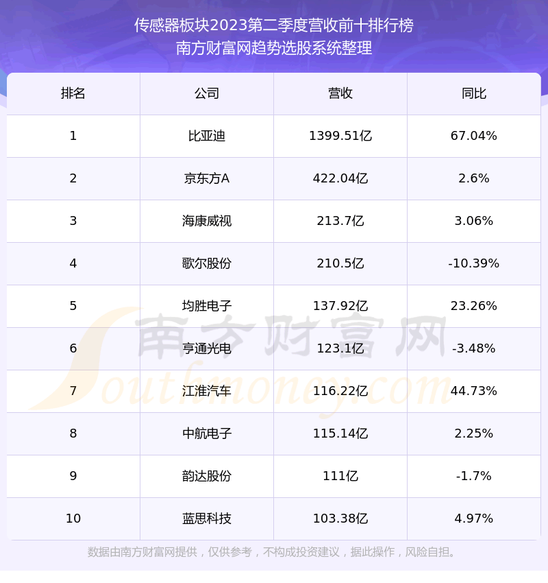 按照趋势选股系统统计,该股所属板块为传感器板块,该板块共有156只股票,高华科技2023第二季度营收在该板块中排名为第145名,该板块2023第二季度营收排名前十的股票如下表:
