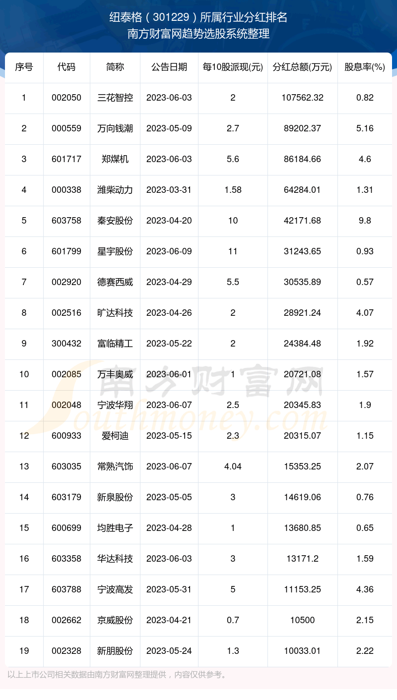 二、纽泰格301229行业分红排名