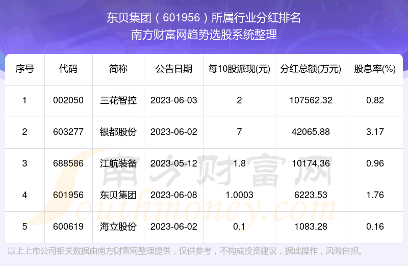 二、东贝集团601956行业分红排名