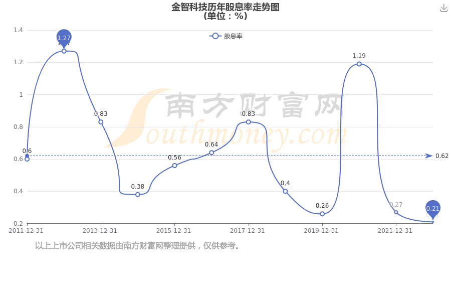近年金智科技年度股息率走势如下图: