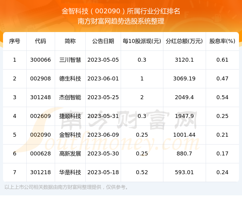 二、金智科技002090行业分红排名
