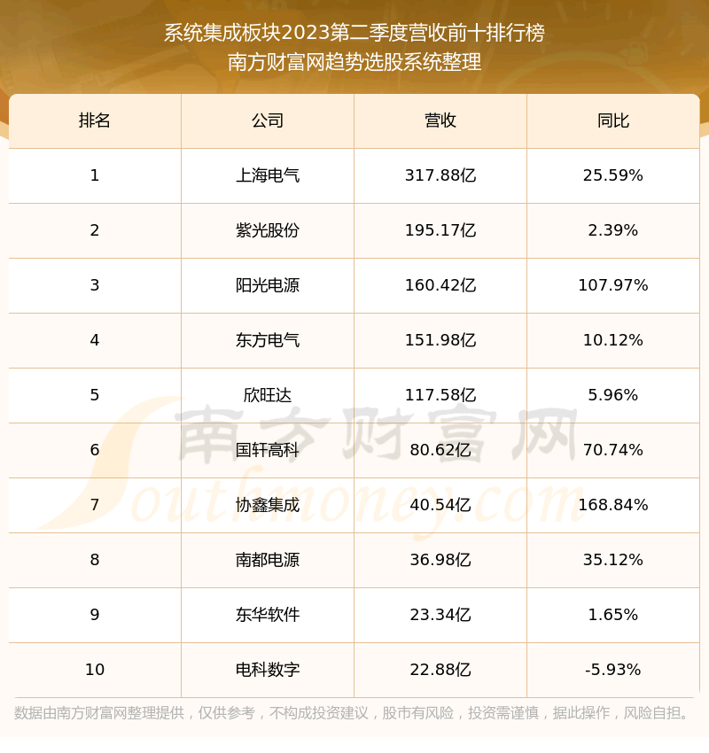 按照趋势选股系统统计,该股所属板块为系统集成板块,该板块共有30只股票,高凌信息2023第二季度营收在该板块中排名为第30名,该板块2023第二季度营收排名前十的股票如下表: