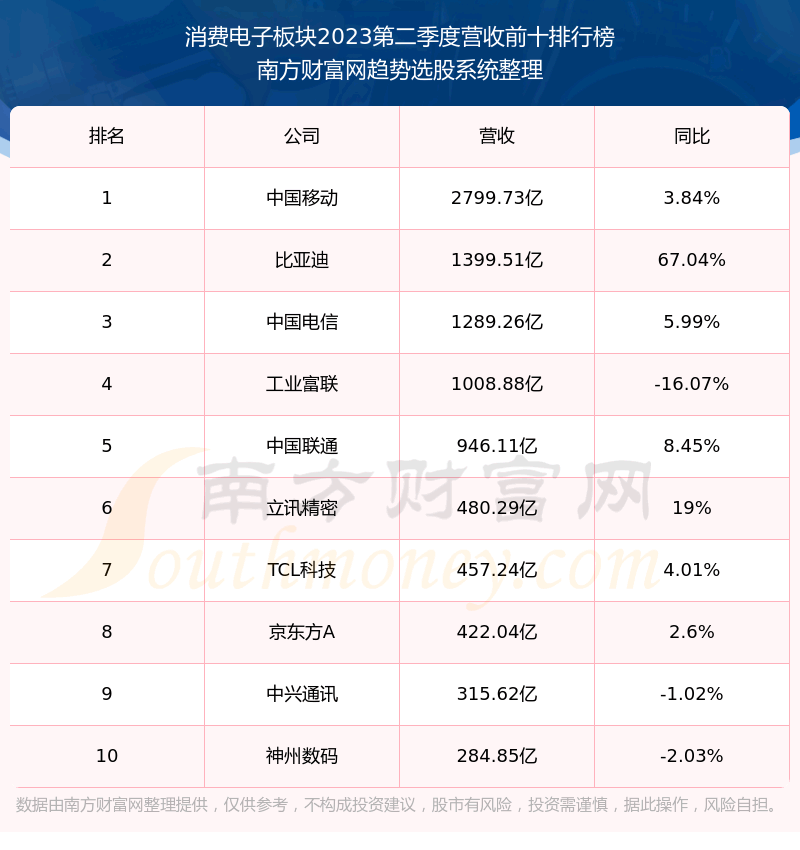 按照趋势选股系统统计,该股所属板块为消费电子板块,该板块共有297只股票,ST美讯2023第二季度营收在该板块中排名为第297名,该板块2023第二季度营收排名前十的股票如下表: