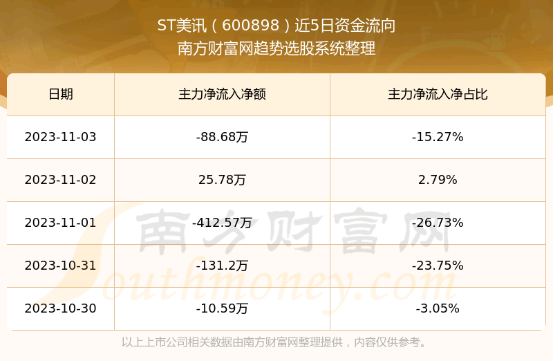 二、ST美讯(600898)近期盘面、资金面情况
