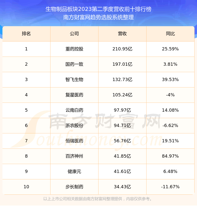 按照趋势选股系统统计,该股所属板块为生物制品板块,该板块共有104只股票,康辰药业2023第二季度营收在该板块中排名为第55名,该板块2023第二季度营收排名前十的股票如下表: