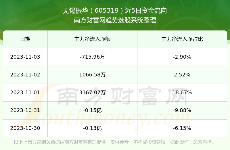二、无锡振华(605319)近期盘面、资金面情况