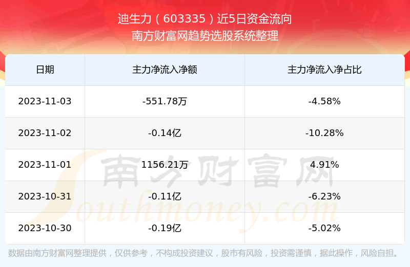 二、迪生力(603335)近期盘面、资金面情况