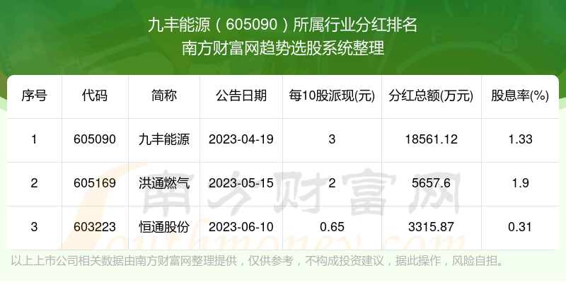 按照趋势选股系统统计,九丰能源所属行业为LNG行业,LNG行业分红排名情况如下表: