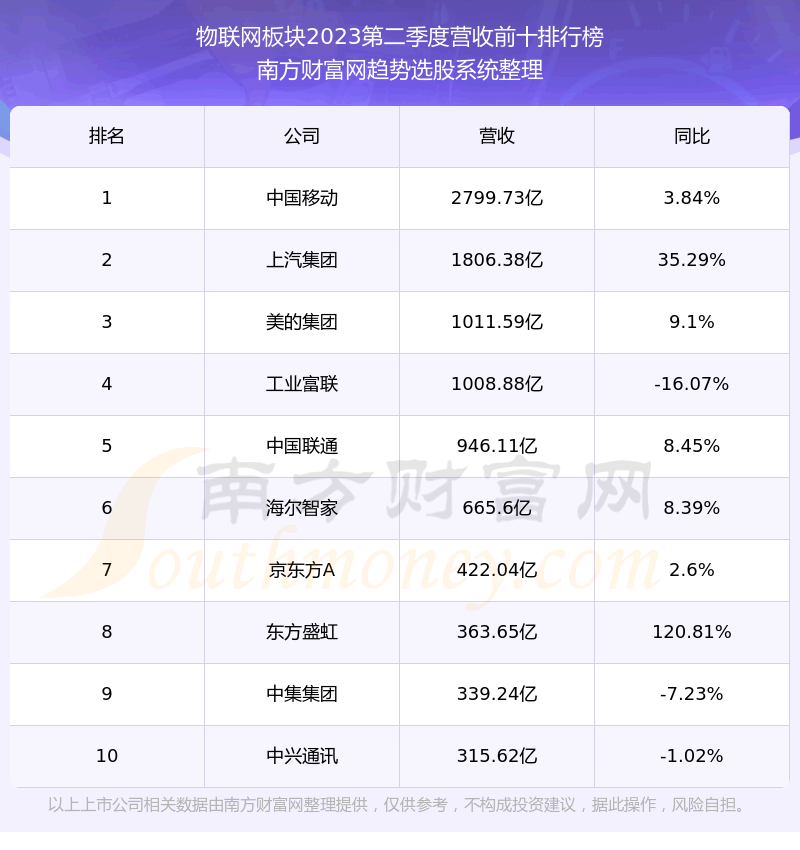按照趋势选股系统统计,该股所属板块为物联网板块,该板块共有483只股票,映翰通2023第二季度营收在该板块中排名为第380名,该板块2023第二季度营收排名前十的股票如下表: