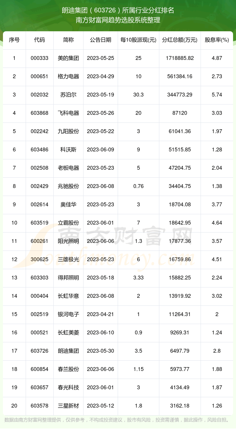 二、朗迪集团603726行业分红排名