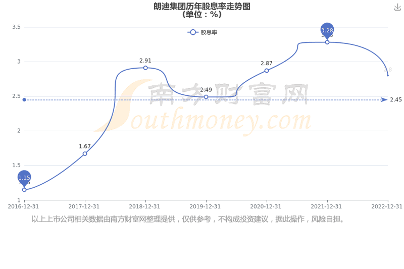 近年朗迪集团年度股息率走势如下图: