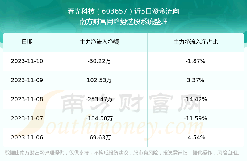 二、春光科技(603657)近期盘面、资金面情况