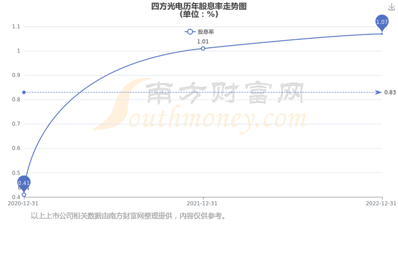 近年四方光电年度股息率走势如下图: