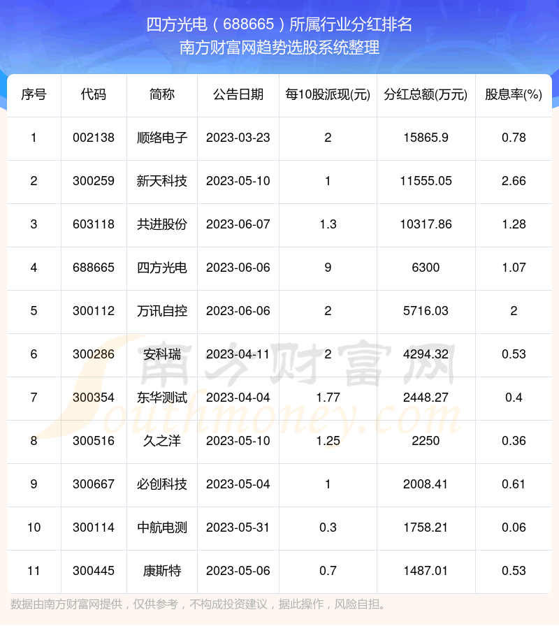 二、四方光电688665行业分红排名