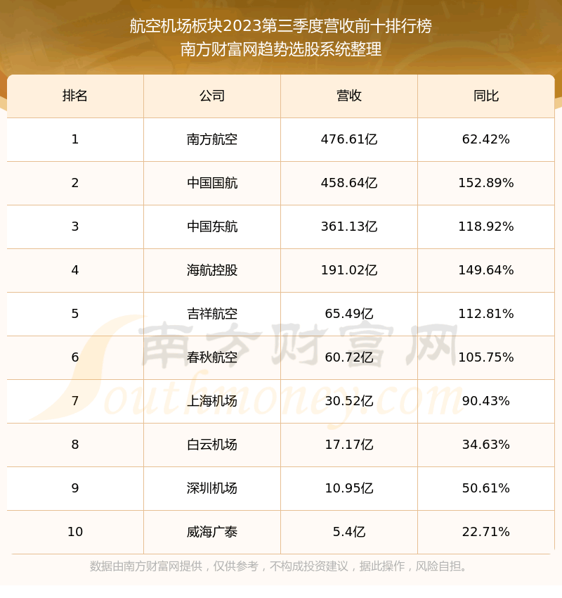 按照趋势选股系统统计,该股所属板块为航空机场板块,该板块共有12只股票,上海机场2023第三季度营收在该板块中排名为第7名,该板块2023第三季度营收排名前十的股票如下表: