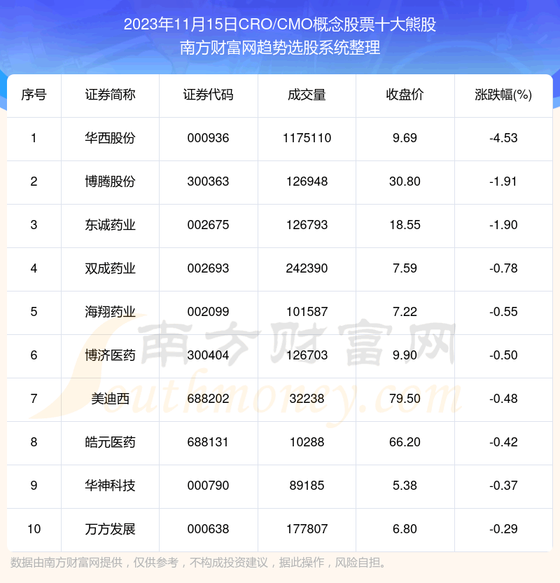 【数据复盘】CRO/CMO概念股票十大熊股 |