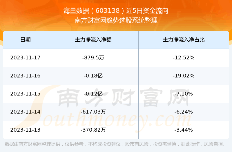 二、海量数据(603138)近期盘面、资金面情况