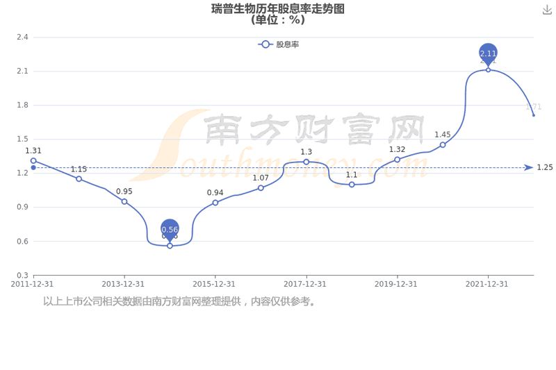 近年瑞普生物年度股息率走势如下图: